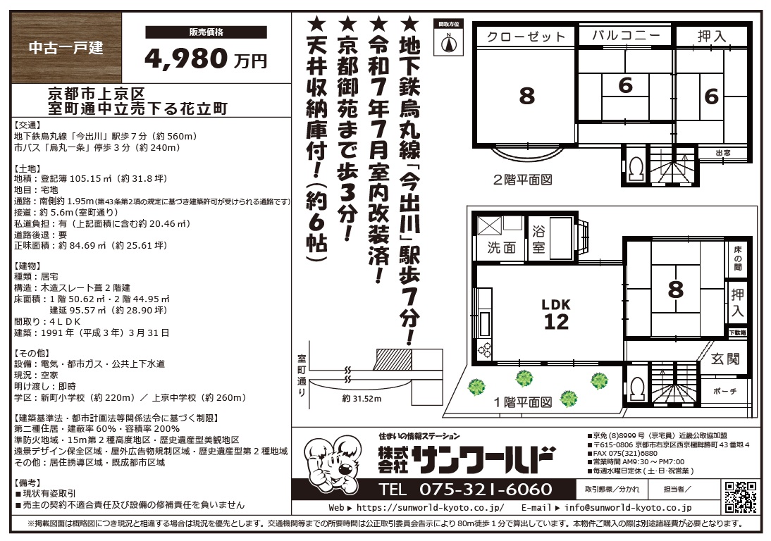 学区:新町小学校(約220m)/ 上京中学校(約260m)