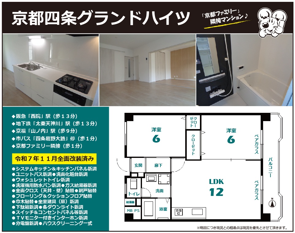 ★令和7年11月全面改装済み★京都ファミリー隣接マンション