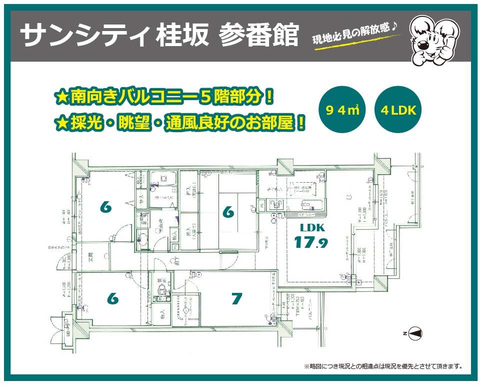 サンシティ桂坂参番館 ★現地必見の解放感★南向き★94㎡4LDK 1,690 万円 所在:京都市西京区大枝北沓掛町二丁目 交通:市バス・京阪京都交通・ヤサカバス「西桂坂」停歩3分 構造:RC造6階建5階部分 号数:503号室 専有面積:94.00㎡ バルコニー:14.45㎡ 間取り:4LDK 管理費:10380円/月 修繕積立金:12270円/月 建築:1990年(平成2年)1月 現況:居住中 明け渡し:相談 総戸数:134戸 管理形態:委託管理 学区:桂坂小学校/大枝中学校 備考:CATV使用料913円/月 この物件のお問い合せ この物件のお問い合せを希望の方は、下の送信フォームに必要事項をご入力の上、送信をお願いいたします。後ほど担当者よりご連絡差し上げますので、お気軽に何なりとご相談ください。 物件名: 『サンシティ桂坂参番館』 お名前 [必須] フリガナ [必須] メールアドレス [必須] お電話番号 お問い合わせ内容